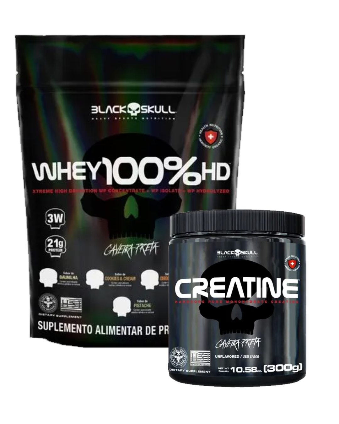 Combo 100% HD 900g + Creatina 300g - Black Skull